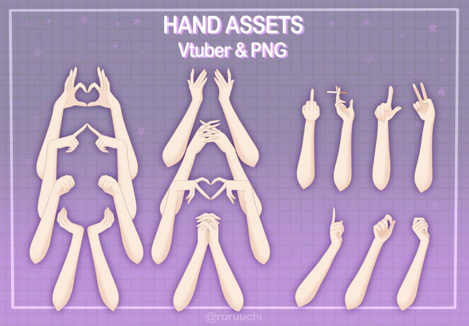 Arm Toggles. There are two types of arm toggles: without handheld and with handheld items.Without handheld : poses like peace signs, heart hands, waving, etc.With handheld : holding a controller, fan, lightstick, microphone, and similar items.You can check the examples below for reference.